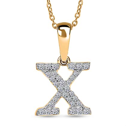 LUXURIANT Lab Grown Diamond X Initial Pendant with Chain (Size 18 - 2 Ext) in 18K Vermeil Yellow Gold Plating Sterling Silver (VS-EF)