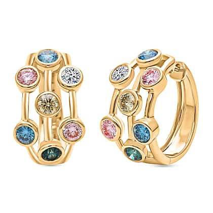 Luxuriant SI-G-H Lab Grown Yellow Diamond & Multi Gemstones Bubble Hoop Lock Earring in 18K Vermeil Yellow Gold Plated Sterling Silver 2.00 Ct.
