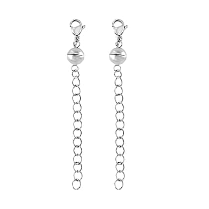 Set of 2 - Rhodium Overlay Lobster Clasp with Magnetic Lock & Extender Chain