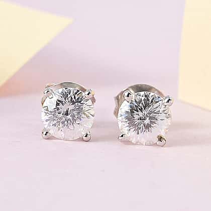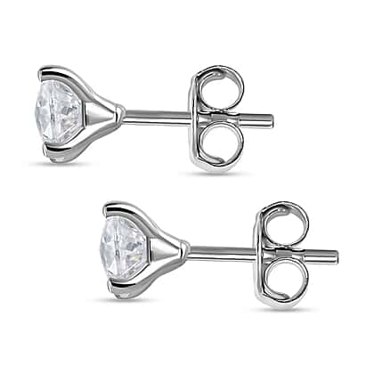 Moissanite Solitaire Stud Earrings with Push Back in Platinum Overlay Sterling Silver 1.62 Ct.