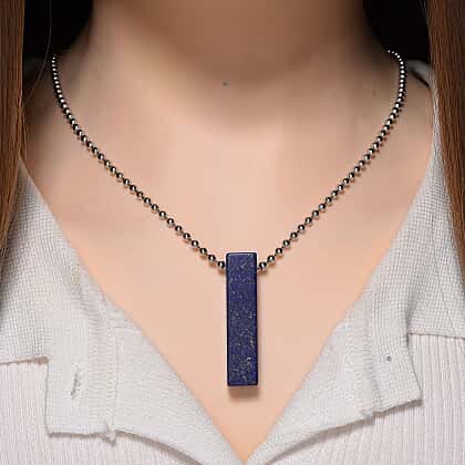 Simple, bold and full of meaning, this 24-inch natural Lapis lazuli bar pendant necklace is a perfect minimalist choice. Known for its rich blue tone and golden flecks, Lapis is prized for its unique beauty and rarity. The clean vertical bar adds structure, while the polished bead chain offers a soft contrast. A secure lobster clasp ensures easy wear and lasting comfort. The long length layers well with other pieces or stands out alone. Designed for women who value clarity, purpose and personal meaning in their style. Each stone is unique, making every necklace truly one-of-a-kind.