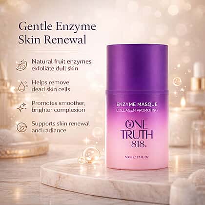 Reveal smoother, younger-looking skin with the One Truth 818 Enzyme Masque. Formulated with a bespoke blend of Glycolic Acid, Lactic Acid, and AHAs, this exfoliating masque helps loosen the rough layer of dead skin cells on the surface, revealing a more radiant complexion. The active ingredients work to promote collagen production, leaving your skin feeling refreshed and rejuvenated. Ideal for those seeking a brighter and more even skin tone, this mask offers a luxurious skincare treatment that helps improve texture and restore vitality.