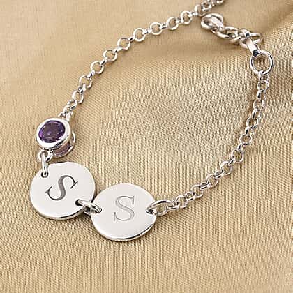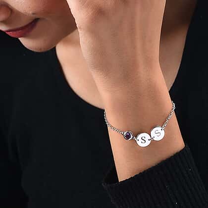 Personalised Engravable Initial Double Disc and Birthstone Bracelet