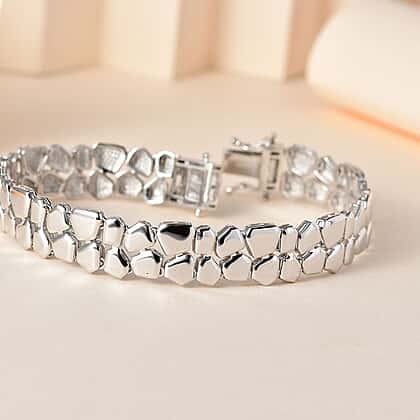 Platinum Overlay Sterling Silver Bracelet (Size - 7.5), Silver Wt. 17.61 Gms