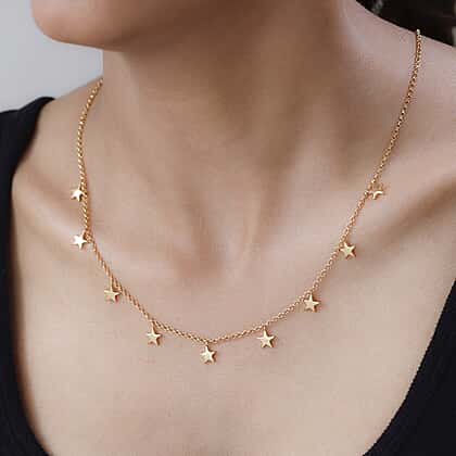 Station Star Necklace (Size - 18) With Lobster Clasp in 18K Vermeil Yellow Gold Plated Sterling Silver