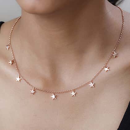 Star Station Necklace (Size - 18) with Lobster Clasp in 18K Vermeil Rose Gold Plated Sterling Silver, Silver Wt 7.30 Gms.