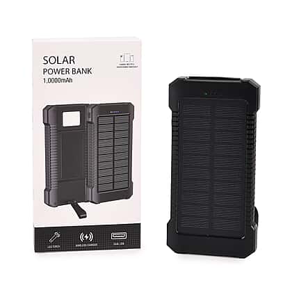 3 in 1 - 10000mAh Solar Power Bank with 5W Wireless Charging and LED Light - Blue