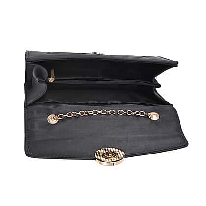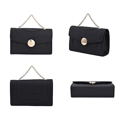 PU Matte Clutch Bag with Metal Chain and Shoulder Strap - Black