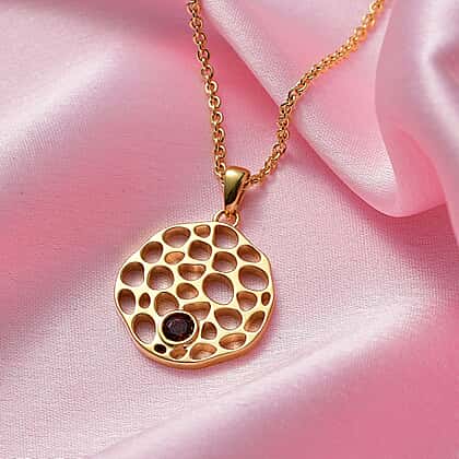 RACHEL GALLEY - Red Garnet Pendant with Chain (Size - 18/22/24 Inch) in Vermeil Yellow Gold Overlay Sterling Silver Wt. 10.40 Gms