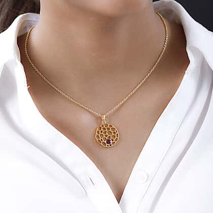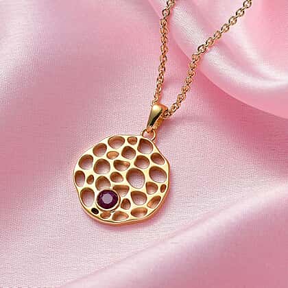 RACHEL GALLEY - Ruby Pendant with Chain (Size - 18/22/24 Inch)in Vermeil YG Ovellay Sterling Silver Wt. 9.80 Gms