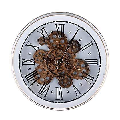 Retro Gear Wall Clock with Roman Numerals - White