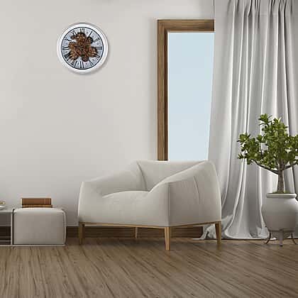 Bring timeless charm into your home with this retro gear wall clock with Roman numerals. Measuring 35cm, it’s crafted with a striking blend of plastic and glass, giving it durability without losing style. The intricate gear detailing at the centre adds a vintage industrial touch, while the bold black numerals stand out beautifully against the white backdrop for easy reading. Lightweight at just 0.89kg, it’s simple to hang, making it a practical yet eye-catching addition to any room. Powered by three AA batteries (not included), this clock combines classic design with everyday convenience, making it perfect for both modern and traditional interiors.