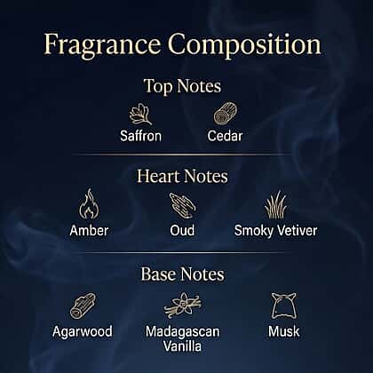 - Base notes of amber and musk create a lasting scent trail
