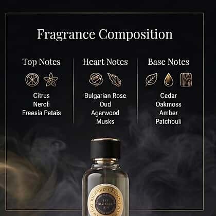 - Layered fragrance featuring citrus, floral, and warm woody notes