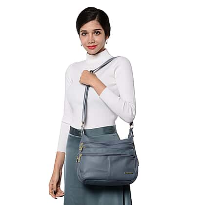 SENCILLEZ Multi Pocket 100% Genuine Leather Crossbody Bag - Blue