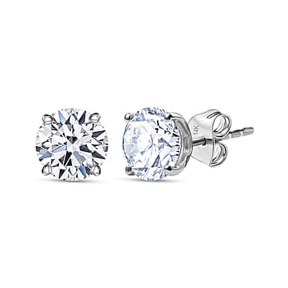 LUXURIANT 3 Ct. Lab Grown Diamond Solitaire Stud Earrings in 14K White Gold SGL Certified (SI-GH)