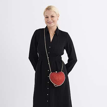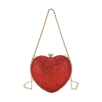 Sheeny Heart-Shaped Crystal Clutch Bag - Red