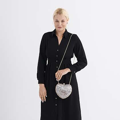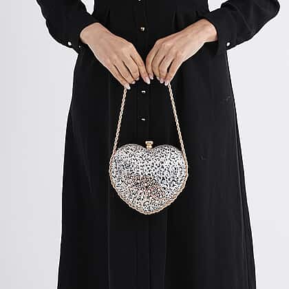 Sheeny Heart-Shaped Crystal Clutch Bag - White Brown