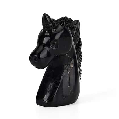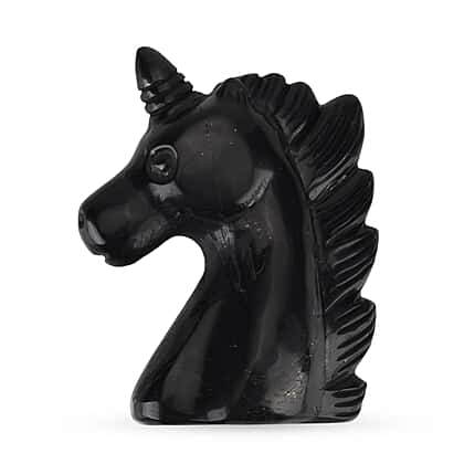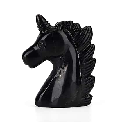 Shungite, Anthraxolite with Quartz Carving Unicorn Figurine (75mm) - Black