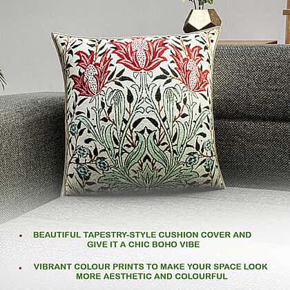 Enrich the look of your living space with this beautiful tapestry-style cushion cover and give it a chic boho vibe. It is made from 100% polyester material, features high-quality tapestry floral prints on both sides, and is secured with a zip on one end to remove the pad for cleaning. It has piped edges and vibrant colour prints to make your space look more aesthetic and colourful.