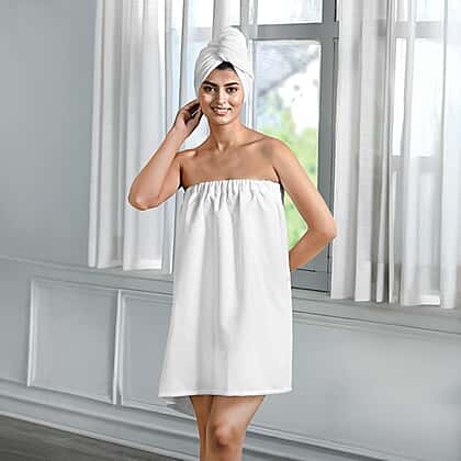 The soft and comfortable microfiber bath and hair wrap cap set is designed to make your post-shower routine effortless and luxurious. Made from ultra-absorbent, quick-drying microfiber, it’s gentle on skin and hair, reducing frizz and helping you dry faster without rough towel rubbing. The hair wrap (28 x 66 cm) fits securely without slipping, while the body wrap (38.5 x 137 cm) offers full coverage and stays in place with ease. Lightweight yet durable, this set is perfect for daily use, travel, or spa days at home. The crisp white colour adds a fresh, timeless touch to your self-care essentials.