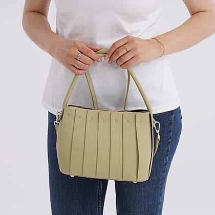 Crossbody Bag with Pleated Design & Top Handle - Green