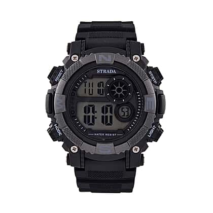 STRADA Electronic Movement 3ATM Water Resistant Multifunctional LED Dial Watch with Black Colour Strap