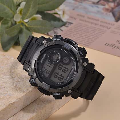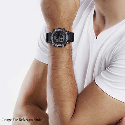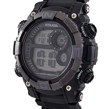 This bold STRADA digital watch pairs rugged design with reliable tech. Built with an electronic movement and a Japanese battery, it offers multifunctional features including a stopwatch, an alarm, a night light, and day-date tracking. A solid black TPU strap and stainless steel buckle ensure durability and comfort. The LED dial, enclosed in a matte black case, is water-resistant up to 3ATM—perfect for daily wear. Its sleek, masculine look suits active lifestyles or adventurous personalities. Backed with a #202 stainless steel case, it’s engineered for lasting performance. This watch makes a practical gift or everyday companion for men who value function and fuss-free style.