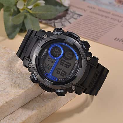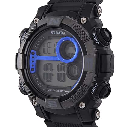 STRADA Electronic Movement 3ATM Water Resistant Blue Multifunctional LED Dial Watch with Black Colour TPU Strap