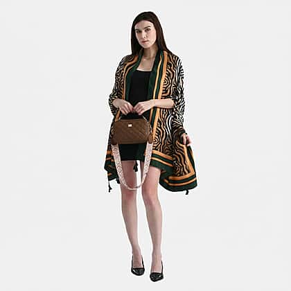 Adorned in rich, autumn tones the Chestnut Charm Holiday Gift feels warm and sophisticated. This set is designed for individuals who adore classic, eye-catching pieces. It features a brown crossbody bag entailing a quilted texture that makes it feel equal parts contemporary and stylish. The chic bag also features zipper compartment to store small essentials like keys, wallet, lipstick, etc.This crossbody bag features a structured silhouette and is perfect for day time events like a casual brunch with your friends, airport getaways, etc.With this bag, comes a satin scarf comes in black, orange, and tan hues. It features zebra-inspired patterns and is decorated by a thick green-hued border. Wrap it around the shoulders or tie it around the bag to complete your look.