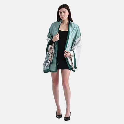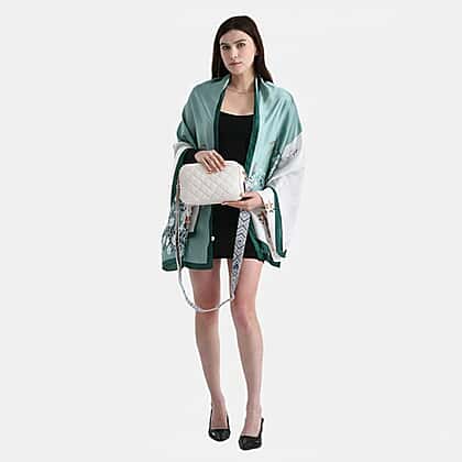 Adorned in the tones of white and artistic motifs, the White Radiance Christmas Gift Pair feels whimsical and sophisticated. This set is designed for individuals who adore classic, eye-catching pieces. It features a white crossbody bag entailing a quilted texture that makes it feel equal parts contemporary and stylish. The chic bag also features zipper compartment to store small essentials like keys, wallet, lipstick, etc.This crossbody bag features a structured silhouette and is perfect for day time events like a casual brunch with your friends, airport getaways, etc.With this bag, comes a satin scarf bathed in white and soft green tones. It features nature-inspired patterns and is decorated by a thick green-hued border. Wrap it around the shoulders or tie it around the bag to complete your look.