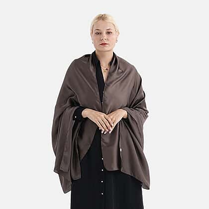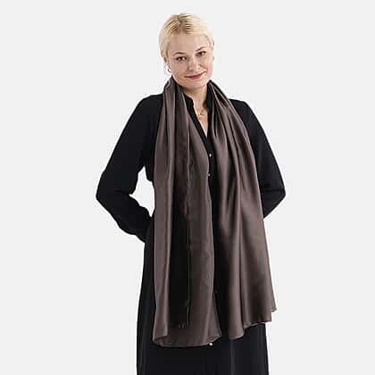 Super Soft Oversize Satin Embroidery Scarf (180 x 80 cm) - Coffee