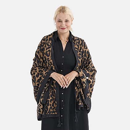 This super soft satin scarf features an oversized design with intricate leopard embroidery, making it both stylish and versatile. The combination of warm tones and the unique pattern adds a bold touch to any outfit. Whether worn as a shawl or a scarf, this piece adds a sophisticated flair to your wardrobe and offers both comfort and style. Ideal for layering over dresses or coats, it’s a must-have accessory for any fashion-forward individual.