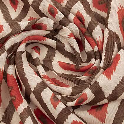 Tamsy Cotton Printed Scarf (Size 180x75 cm) - Red and Beige