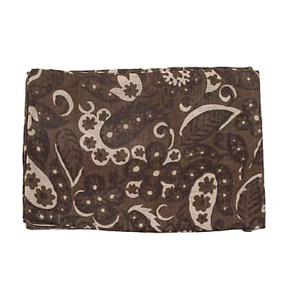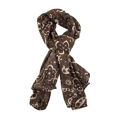 Tamsy Floral Printed Scarf (Size 180x75 cm) - Dark Brown