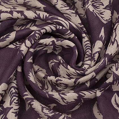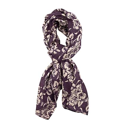 TAMSY Cotton Printed Scarf - Purple and Beige