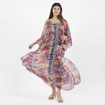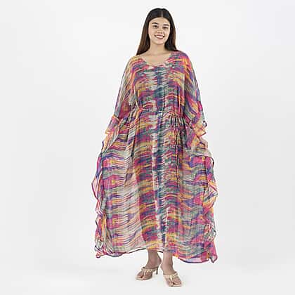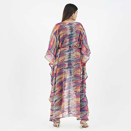TAMSY Kaftan With Waist Tie Drawstring and Ruffle Hem - Multi Color