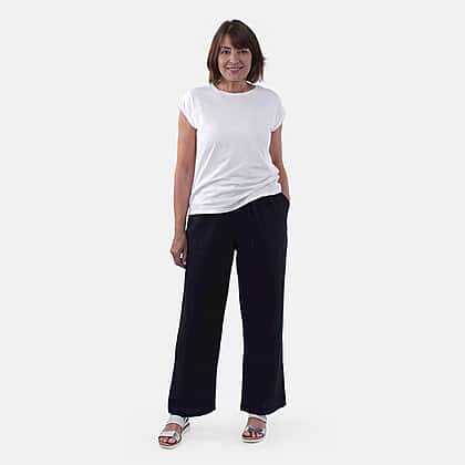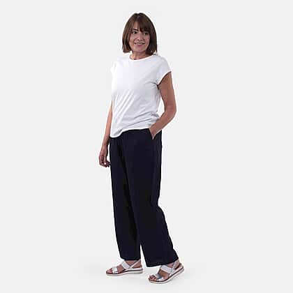 Get some cool and comfy vibes with our linen-rich loose-fit trousers. It is made from viscose and linen blend fabric. The trousers feature two side and back pockets, tapered legs and an elasticated waistband with a drawstring. Style these ankle pants with a t-shirt or a pullover top for some comfy, light and fresh feel.