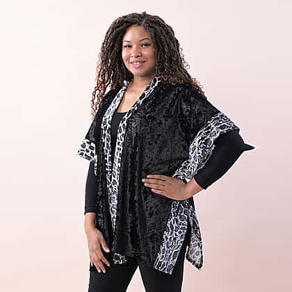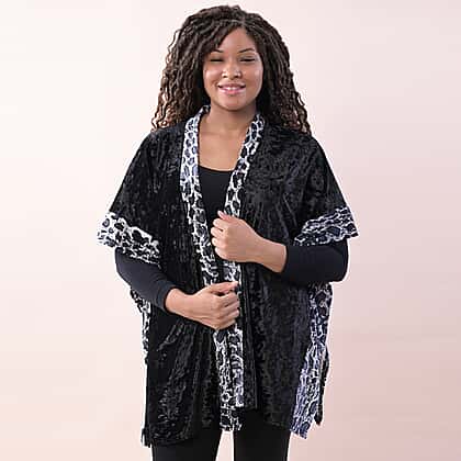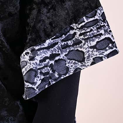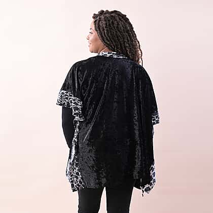 TAMSY Velvet Kimono with Leopard Print Border - Black and Grey