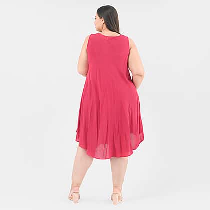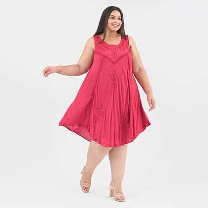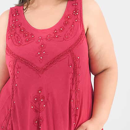 This perfect summer umbrella dress is a lightweight staple option you need this season. It is made from soft viscose material, with a scoop neckline and sleeves-less dress. It features sequin floral embroidery all over the dress to give it a chic and aesthetic look. Style this mid-length dress with strappy sandals, and you are all set for the summer holiday look.