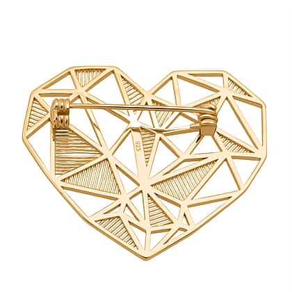 Sterling Silver Heart Shape Brooch in Yellow Gold Plating, Silver Wt. 6.39 Gms.