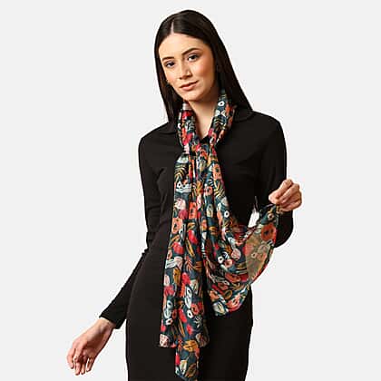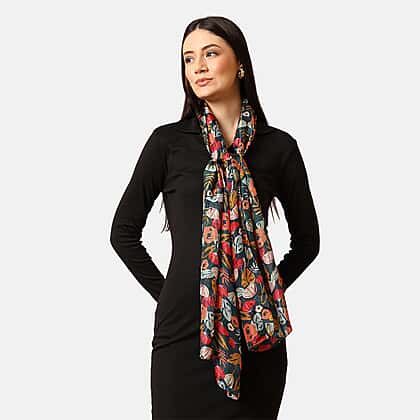 VALLISERIE 100% Mulberry Silk Botanical Elements Digital Printed Scarf (50x175 cm) - Green