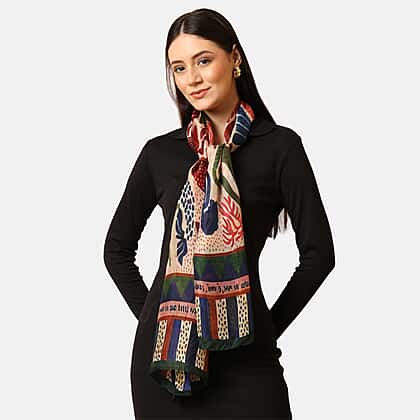 VALLISERIE 100% Mulberry Silk Butterfly Digital Printed Scarf (50x175 cm) - Red
