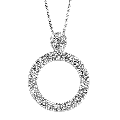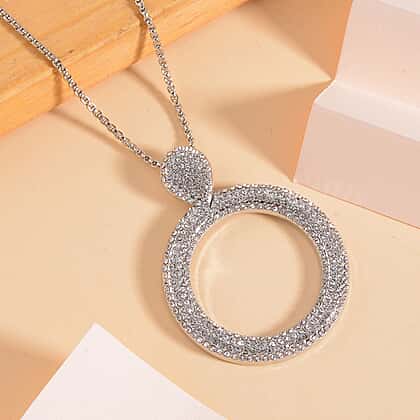 White Austrian Crystal Circle Necklace (Size - 24) in Silver Tone