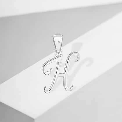 Diamond H Initial Pendant in Sterling Silver Rhodium Plated 13.8mm x 21mm