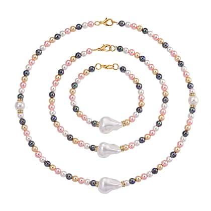 Multi Colour Shell Pearl & White Crystal Necklace 282.00 Ct.