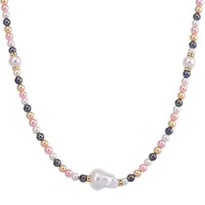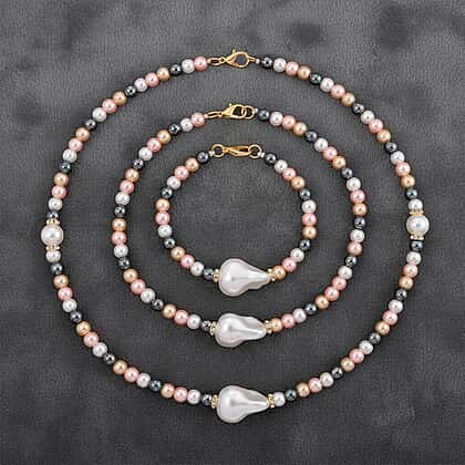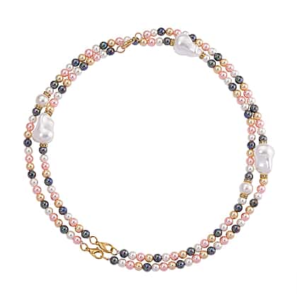 This multi-colour shell pearl necklace offers a soft, graceful glow with its double-strand design and beautiful teardrop-shaped focal pearls. The silver tone enhances each shell pearl's smooth, satin-like lustre, giving the piece a refined and feminine finish. Crafted with pure alloy with a glossy finish for enduring shine and beauty. Accented with delicate white crystals for a hint of sparkle, the necklace creates a statement look that remains wearable for both occasion dressing and elevated everyday style. A beautiful blend of classic pearl charm and modern styling.
