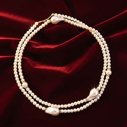 This white shell pearl necklace offers a soft, graceful glow with its double-strand design and stunning teardrop-shaped focal pearls. The silver tone enhances each shell pearl's smooth, satin-like lustre, giving the piece a refined and feminine finish. Crafted with pure alloy with a glossy finish for enduring shine and beauty. Accented with delicate white crystals for a hint of sparkle, the necklace creates a statement look that remains wearable for both occasion dressing and elevated everyday style. A beautiful blend of classic pearl charm and modern styling.