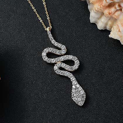White Zircon Pendant with Chain (Size 20) in 18K Vermeil Yellow Gold Plated Sterling Silver 1.15 Ct.