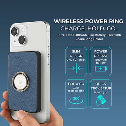 Wireless Power Ring Ultra-Fast 1500mAh Slim Battery Pack With Phone ring Holder